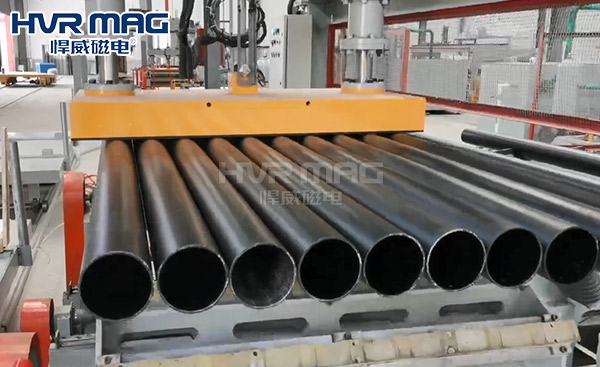 在智能智造的現在,產品的搬運的過程中,為了提高生產效率,產品的快速轉運,電永磁以安全,節能征服了很多的市場,而成排搬運的情況越來越多,悍威磁電以多年的經驗積累,會采用電永磁起重電磁吊搬運成排鋼管呢?