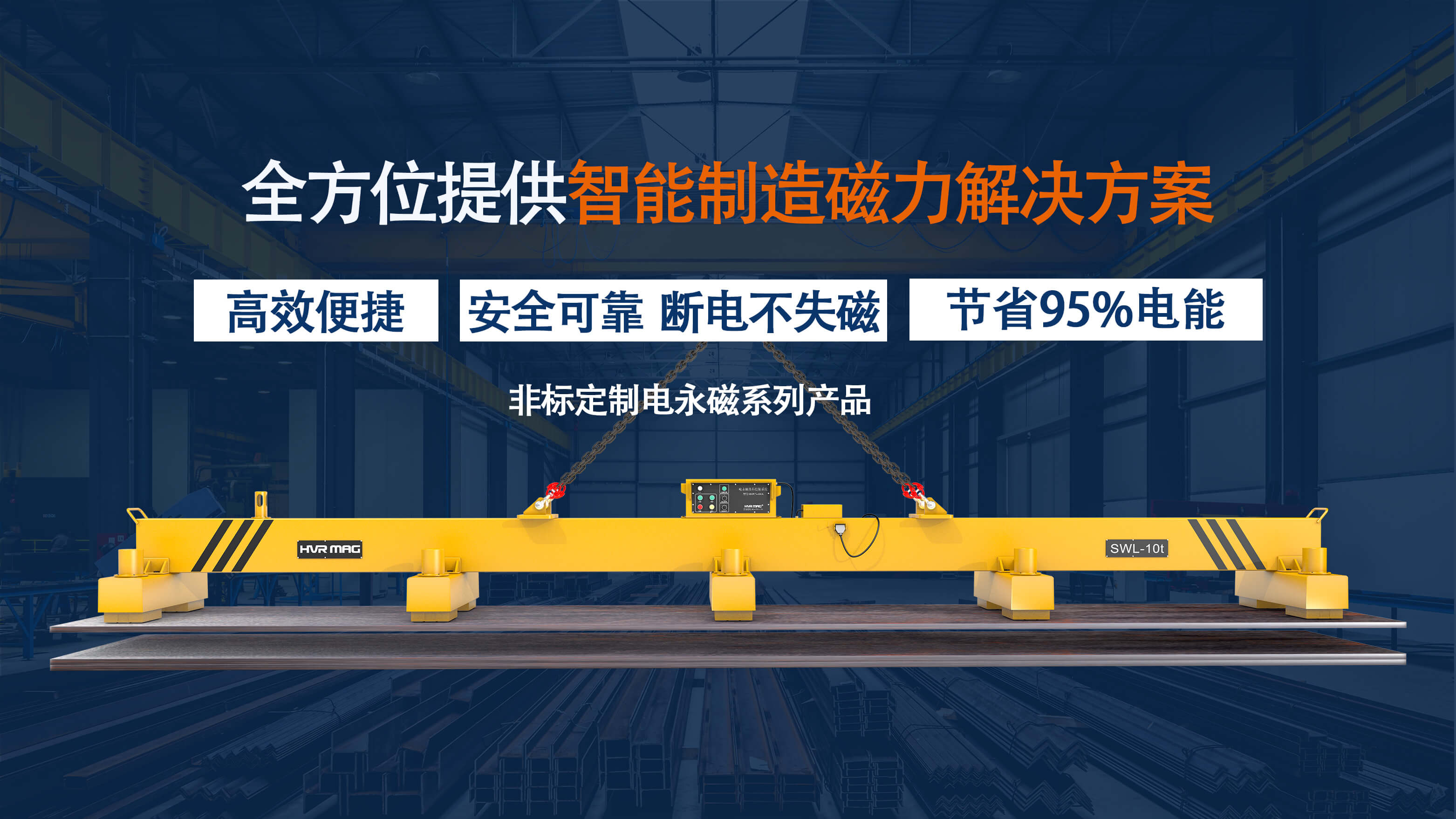 哪里有鋼材起重搬運,哪里就有悍威磁電。悍威磁電深入磁力起重行業15年,以電永磁鐵為核心,為起重機、機械手等自動化設備提供電永磁吊具、電永磁夾具,解決工業自動化鋼板、鋼管、型鋼、異型鋼等鋼材的智能抓取、搬運、焊接固定等難題。