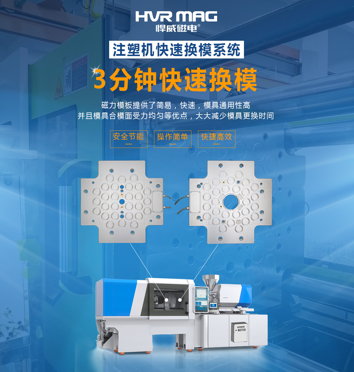 通常,電永磁快速換模系統更換模具只需要3分鐘,而更換大型模具的時間從2小時減少到10分鐘