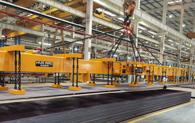 最近,一套最新定制的起重電永磁鐵在廣東汕尾比亞迪的鋼結(jié)構(gòu)工廠投入使用,該電磁起重裝置的設(shè)計(jì)目的是代替客戶工廠以前使用的機(jī)械搬運(yùn)裝置-鋼板鉗。由于工廠生產(chǎn)制造各種不同尺寸規(guī)格的鋼板,并且需要經(jīng)常對(duì)其進(jìn)行搬運(yùn)來(lái)進(jìn)行后續(xù)的加工,傳統(tǒng)的鋼板鉗已經(jīng)不能滿足客戶的生產(chǎn)需求了。