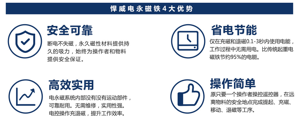 與傳統機械吊運方式相比,電永磁鐵磁力吊具具有更高的安全保障,采用智能控制器進行操作,安全簡便,效率更高。